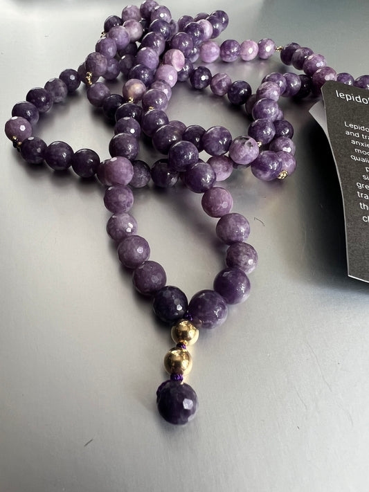 Lepidolite & Gold Mala